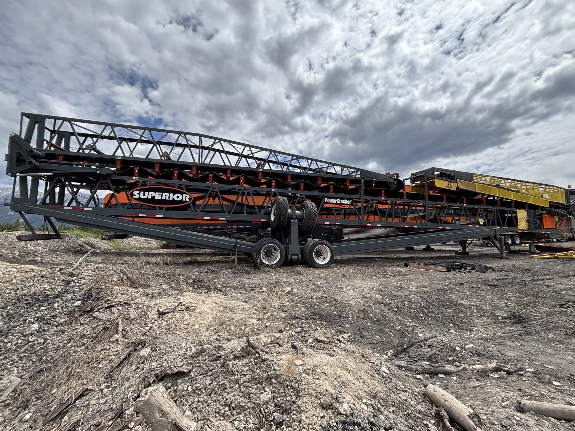 2- CV-0133, Superior Power stacker conveyor model 36”x150’, SN 938680 6-2016, belt length 323’. 208–2 50 V 3 Phase 60 hp. Hydraulics run by 3 Phase, 208-230 V 10hp electric motor. Belt new condition. Tires like new condition.